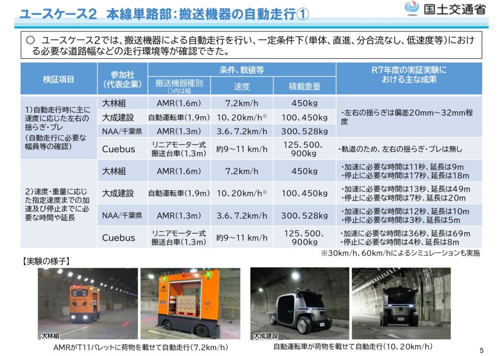 ケースごとに検証した結果、自動、無人で荷物を運ぶという自動物流道路のコンセプトは、一定条件下ではある